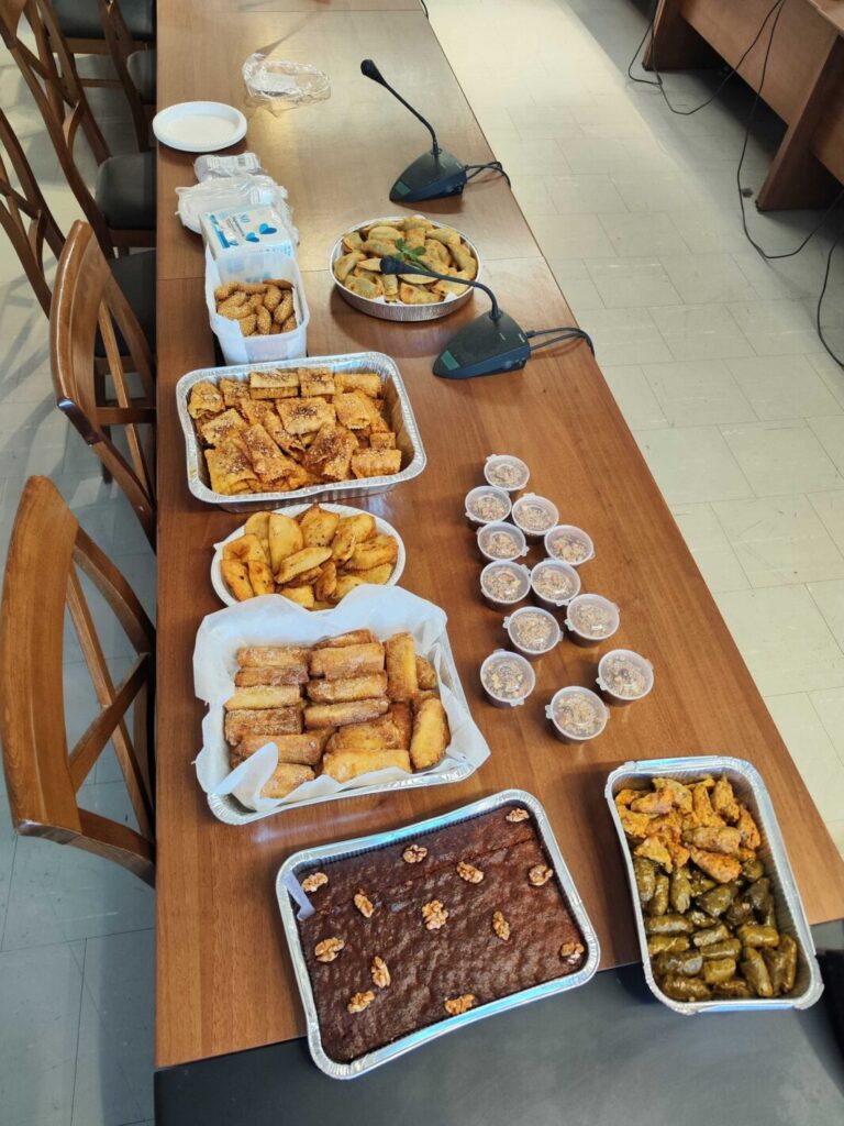 Η επίσκεψή μας ολοκληρώθηκε με παραδοσιακά τοπικά εδέσματα και ροφήματα, τα οποία είχε ετοιμάσει ειδικά για τη συνάντηση η ομάδα παραδοσιακής μαγειρικής και ζαχαροπλαστικής του ΚΑΠΗ του Δήμου.